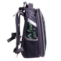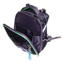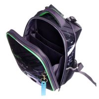 Ранец изготовлен из формованного EVA-материала и высокопрочного непромокаемого полиэстера. Размер 30 х 38 х 16 см. Вес 900 г. Прочные формованные стенки и дно ранца позволяют надежно защитить содержимое от влаги, загрязнений и предотвращают его замятие. Ранец с двумя вместительными отделениями, закрывающимися на реверсивную пластиковую молнию с металлическими «бегунками»; в первом — «плавающие» перегородки для тетрадей и учебников, во втором – большой карман из сетки и карманы-органайзеры для канцелярских принадлежностей. Плотная спинка с анатомическими элементами дополнительно укреплена пластиком, сверху – дышащая трехслойная сетка. Лямки-маечка плотные, мягкие. Регулируются по длине и высоте, что позволяет без труда отрегулировать их по росту ребенка. Ранец снабжен надежным нагрудным фиксатором. Есть удобная мягкая ручка для переноски и дополнительная петлевая ручка для размещения ранца на крюке. На дне ранца есть две пластиковые ножки. В соответствии с требованиями к безопасности на дороге, ранец имеет светоотражающие элементы на лямках и корпусе.