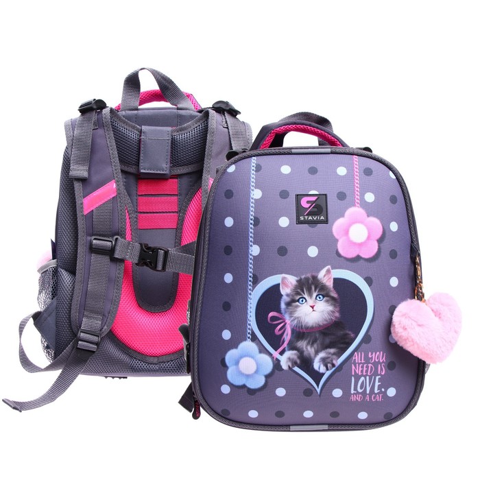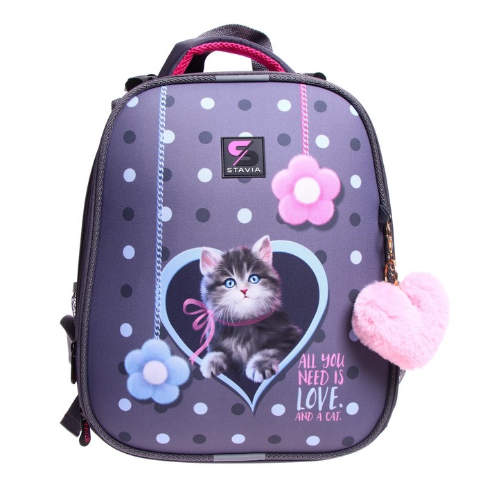 Рюкзак каркасный школьный 38×30×16 см, эргономичная спинка, Stavia «Кот»