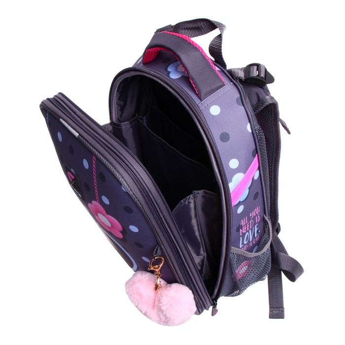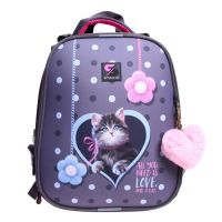 Набор|Нет;Цвет|Серый;Для кого|Для девочки;Возраст|1-5 класс;Особенности ранцев|Грудное крепление;Особенности ранцев|Система роста;Особенности ранцев|Жёсткая эргономичная спинка;Количество отделений|2;Количество лямок|2;Лицензия|Нет;Рисунок|Да;Материал|Текстиль;Тип|Рюкзак каркасный;С наполнением|Нет;Штрихкод на единице товара|Да;Изображение|Кот/Кошка;Размер|До 15 литров (маленький);