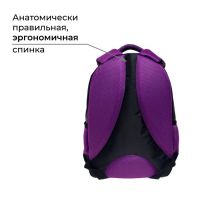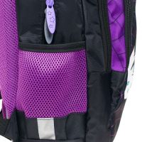 Ученический рюкзак для среднего школьного возраста предназначен для переноски личных вещей и школьных принадлежностей. Верх изделия выполнен из прочного водоотталкивающего материала с покрытием ПВХ. Отдельные элементы оформлены оригинальным принтом. Внутренняя поверхность изготовлена из цветной подкладочной ткани, соответствующей дизайну.
