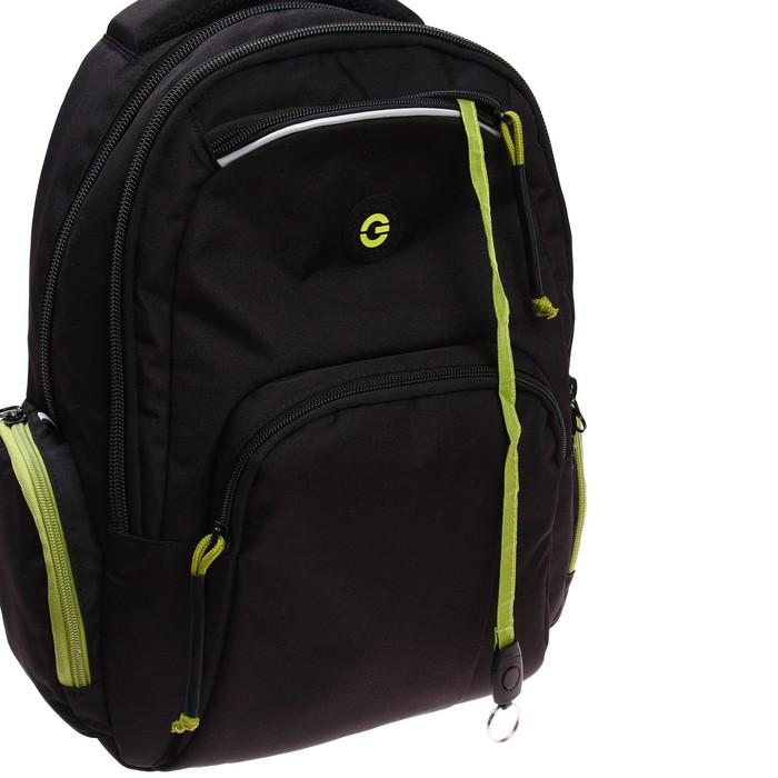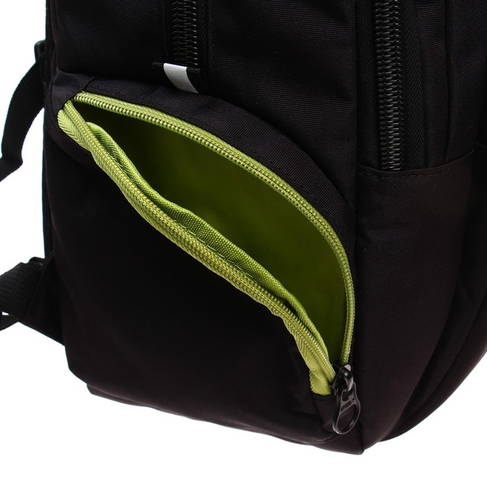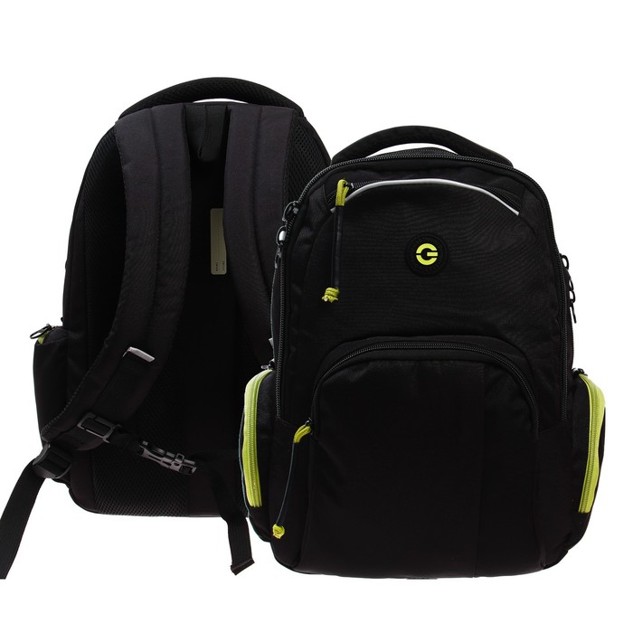 Набор|Нет;Цвет|Зелёный;Цвет|Чёрный;Для кого|Для девочки;Для кого|Для женщины;Для кого|Для мужчины;Для кого|Унисекс;Для кого|Для мальчика;Возраст|5-11 класс;Особенности ранцев|Отделение для ноутбука;Особенности ранцев|Грудное крепление;Особенности ранцев|Жёсткая эргономичная спинка;Количество отделений|2;Количество лямок|2;Рисунок|Нет;Материал|Текстиль;Тип|Рюкзак мягкий;Штрихкод на единице товара|Да;Изображение|Без рисунка;