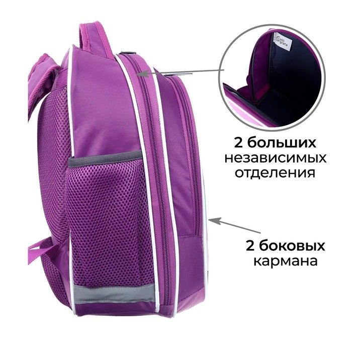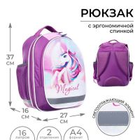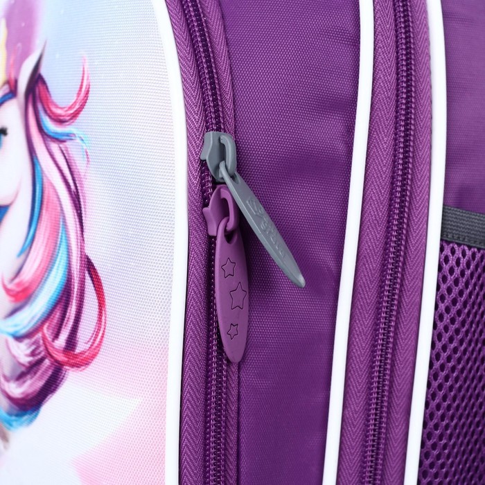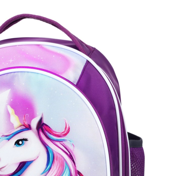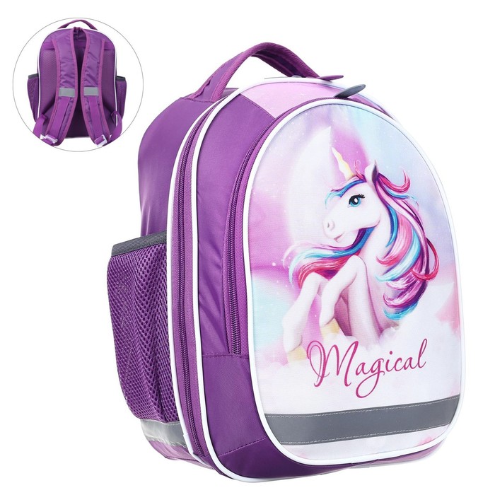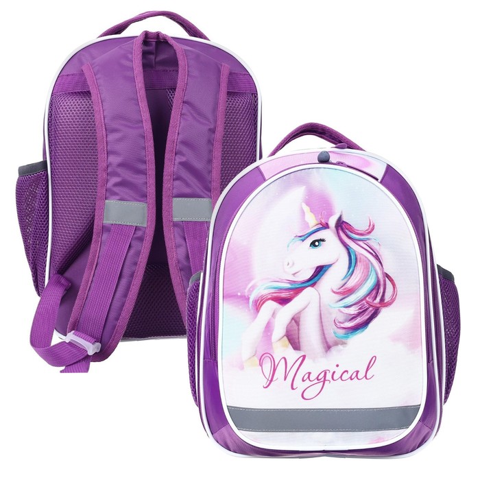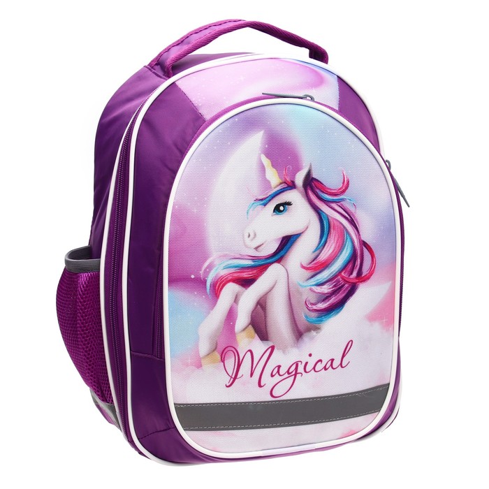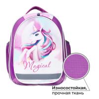 Набор|Нет;Цвет|Разноцветный;Цвет|Голубой;Цвет|Сиреневый;Цвет|Белый;Для кого|Для девочки;Возраст|1-5 класс;Особенности ранцев|Жёсткая эргономичная спинка;Европодвес|Да;Количество отделений|2;Количество лямок|2;Лицензия|Нет;Рисунок|Да;Материал|Полиэстер;Тип|Рюкзак мягкий;Штрихкод на единице товара|Да;Изображение|Пони/Лошадь/Конь;Изображение|Единорог;Размер|15-20 литров (средний);