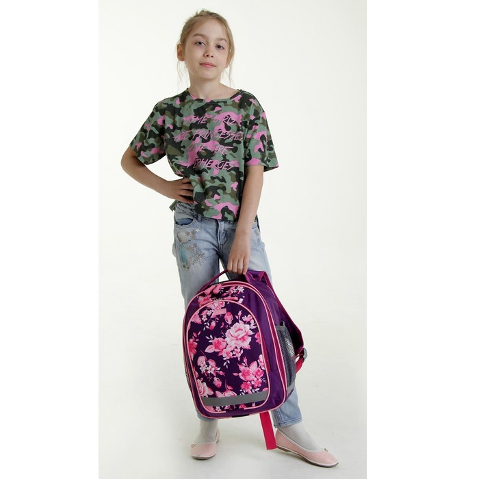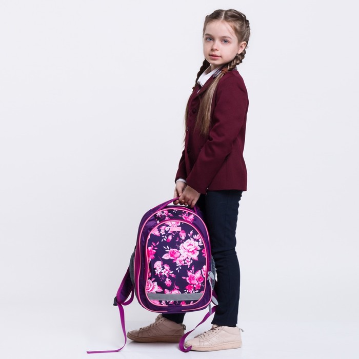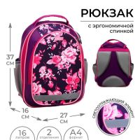 Рюкзак школьный, 37 х 27 х 16 см, эргономичная спинка, Calligrata Б "Цветы", сиреневый