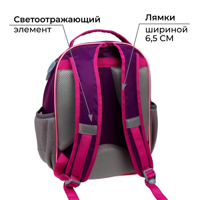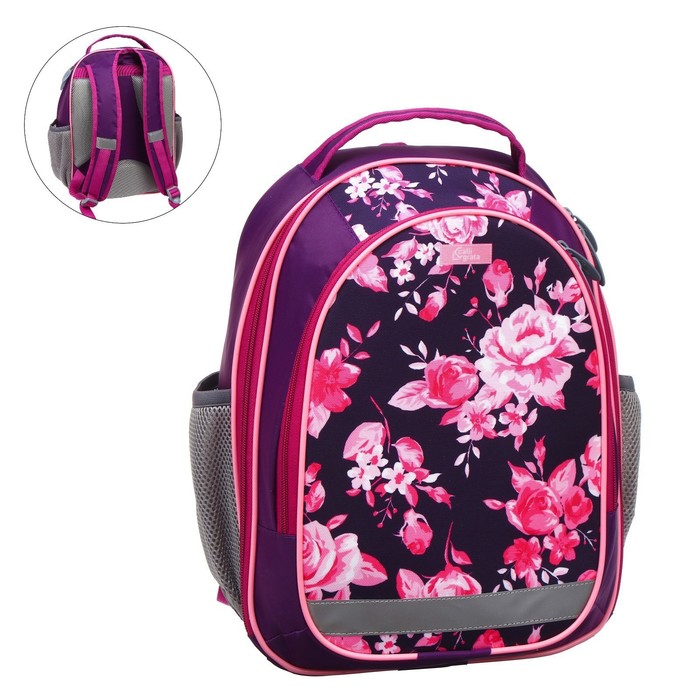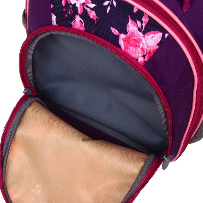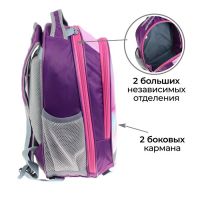 Набор|Нет;Цвет|Сиреневый;Цвет|Розовый;Для кого|Для девочки;Возраст|1-5 класс;Особенности ранцев|Жёсткая эргономичная спинка;Европодвес|Да;Количество отделений|2;Количество лямок|2;Лицензия|Нет;Рисунок|Да;Материал|Полиэстер;Тип|Рюкзак мягкий;Штрихкод на единице товара|Да;Изображение|Цветочно-растительный;Размер|15-20 литров (средний);