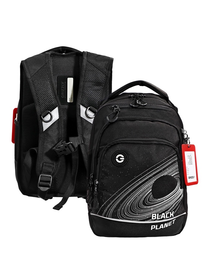 Рюкзак школьный, 40?25?22 см, Grizzly, эргономичная спинка, отделение для ноутбука, чёрный, RB-550-3_2