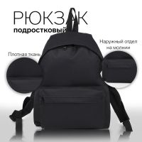 Рюкзак школьный из текстиля на молнии «ЗФТС», наружный карман, цвет чёрный