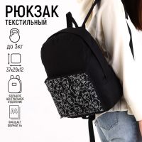 Набор|Нет;Цвет|Чёрный;Для кого|Для девочки;Для кого|Для мальчика;Для кого|Унисекс;Для кого|Для женщины;Для кого|Для мужчины;Возраст|5-11 класс;Особенности ранцев|Мягкая спинка;Количество лямок|2;Вид застёжки|Молния;Тематика|Узоры;Рисунок|Да;Материал|Текстиль;Тип|Рюкзак мягкий;Стиль|Повседневный;Размер|До 15 литров (маленький);