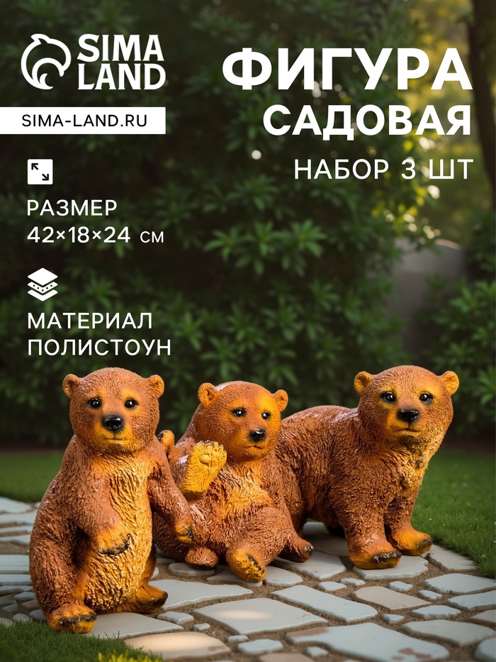 Садовая фигура из полистоуна «Мишки бурые», 42?18?24 см, набор 3 шт.