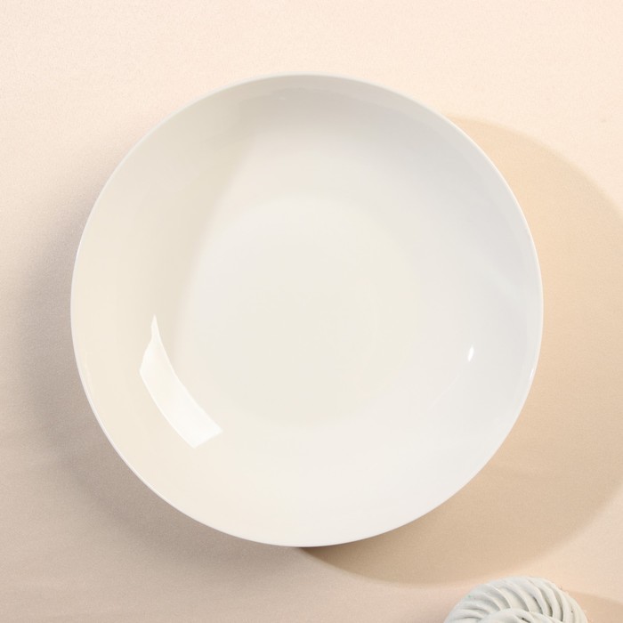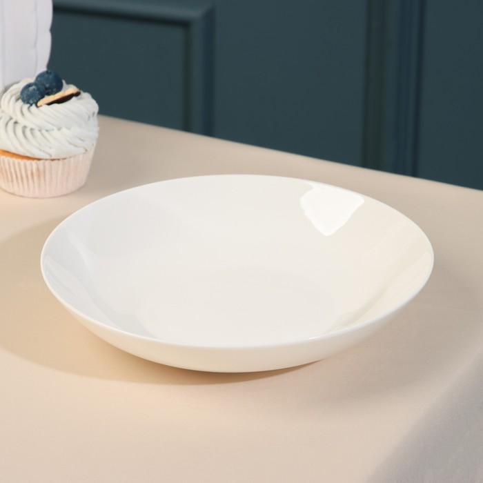 Набор|Нет;Цвет|Белый;Диаметр, см|20;Высота, см|4;В наборе, шт.|1;Объём, мл|620;Тематика|Однотонная;Рисунок|Нет;Крышка|Нет;Материал|Фарфор;Можно мыть в посудомоечной машине|Да;Можно использовать в СВЧ-печи|Да;Текстура|Гладкая;Особенности|Без особенностей;Для горячего|Да;