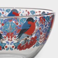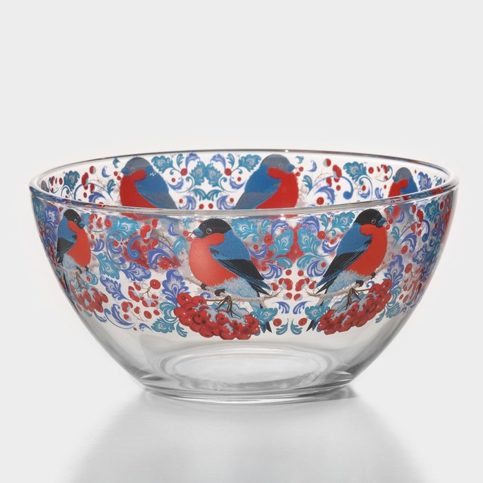 Салатник новогодний «Снегири на рябине», 900 мл, стекло, синий, красный