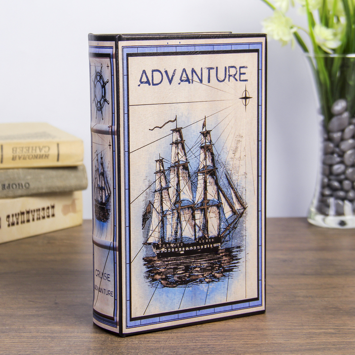 Шкатулка книга-сейф «Морское приключение», дерево и искусственная кожа, с замком, 21?13?5 см