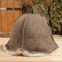 Шапка для бани и сауны «Войлочная», овчина покрытая войлоком, скорняжный шов, тёмная