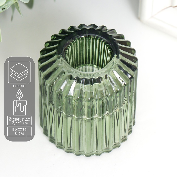 Стеклянный подсвечник на 1 свечу «Долли», d=2.5 см, 4 см, зелёный, 6?5?5 см