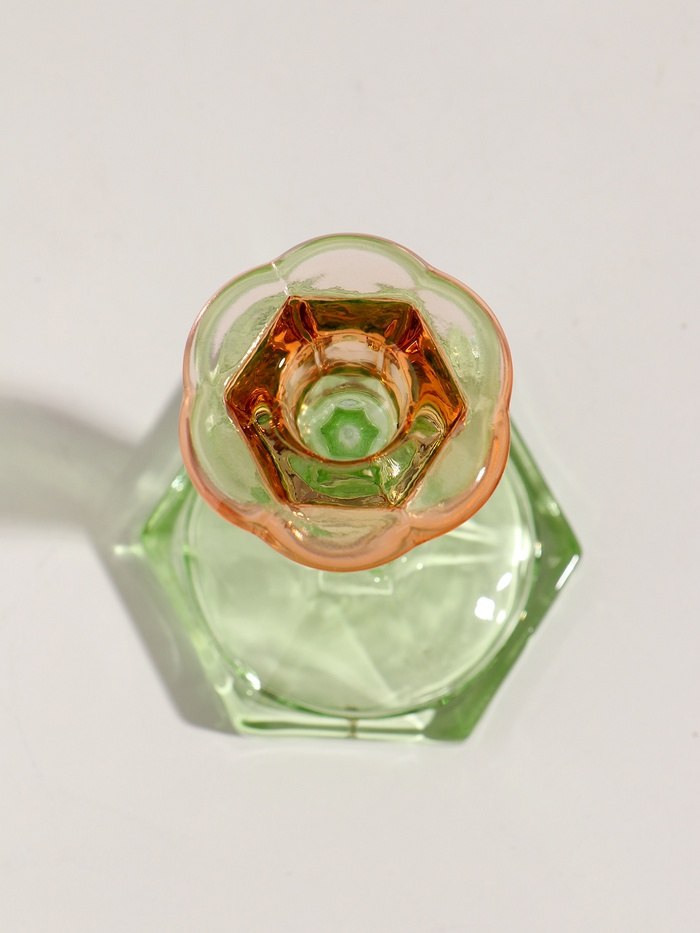 Стеклянный подсвечник на 1 свечу «Градиент. Грани», оранжево-зелёный, d=2.2 см, 9.5?9.5?15.5 см