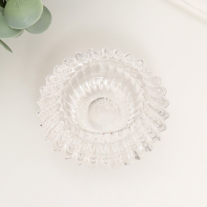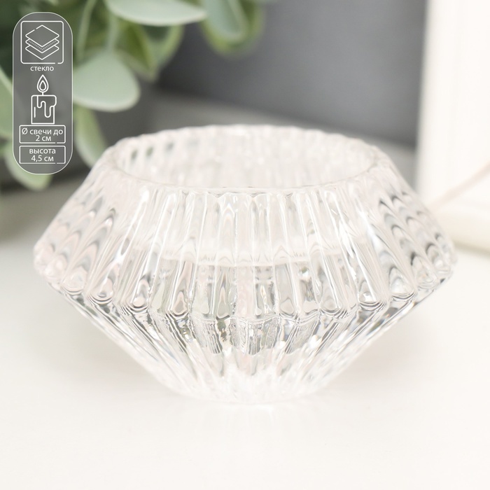 Стеклянный подсвечник на 1 свечу «Конус. Гофре», двухсторонний: d= 2 см и 4 см, прозрачный, 7.5?7.5?4.5 см