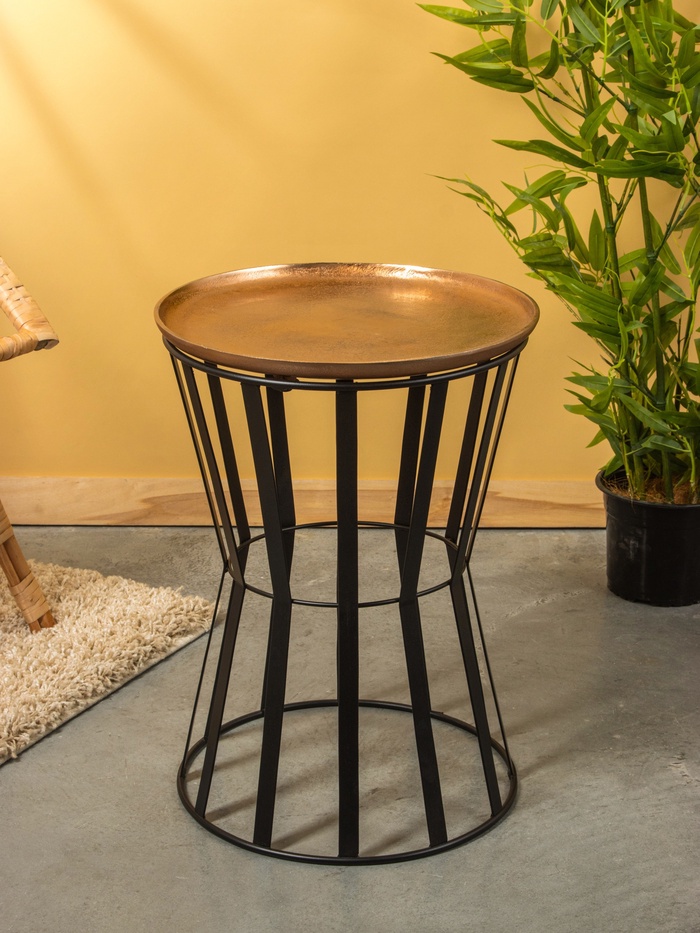 Журнальный столик «Песочные часы» фигурной формы 42?42?56 см из алюминия и железа. Элегантное сочетание золотистых и черных оттенков создает эффектную геометрию в пространстве. Готов к использованию сразу после распаковки — стильный акцент для современных интерьеров.