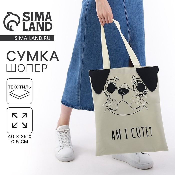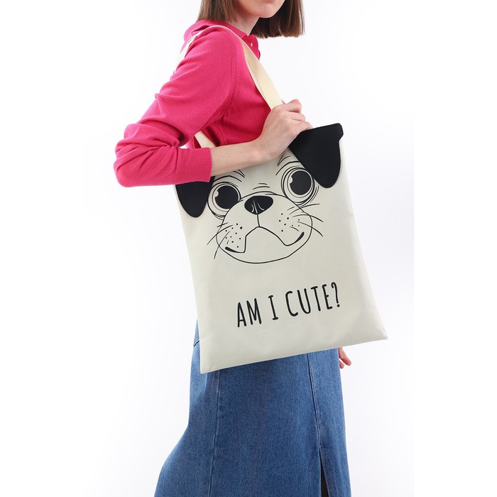 Цвет|Бежевый;Для кого|Для девочки;Вид застёжки|Без застёжки;Материал|Полиэстер;Модель сумки|Шопер;Размер|Средний;Каркас|Мягкий;Изображение|Собака;