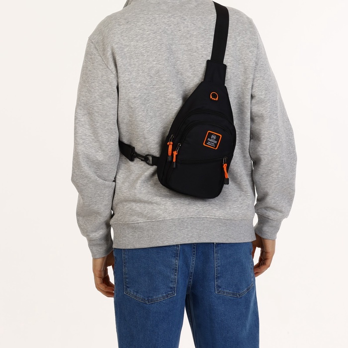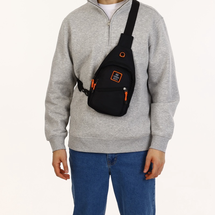Сумка-слинг на молнии, наружный карман, цвет чёрный