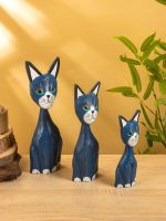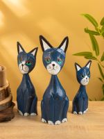 Сувенир интерьерный «Кошачья семья», набор 3 шт., h=30 см, h=25 см, h=20 см, дерево, синий