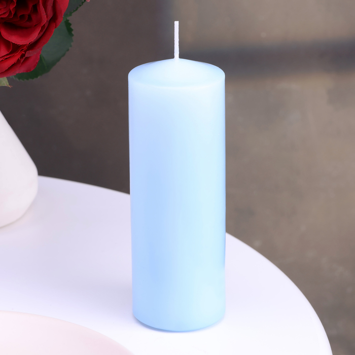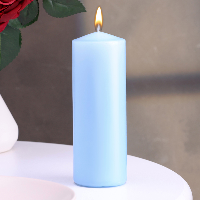 Набор|Нет;Цвет|Голубой;Ширина, см|5;Время горения, ч|14;Высота свечи, см|15;Материал|Парафин;Форма свечи|Цилиндр;Ароматизированные|Нет;Состав|Парафин;