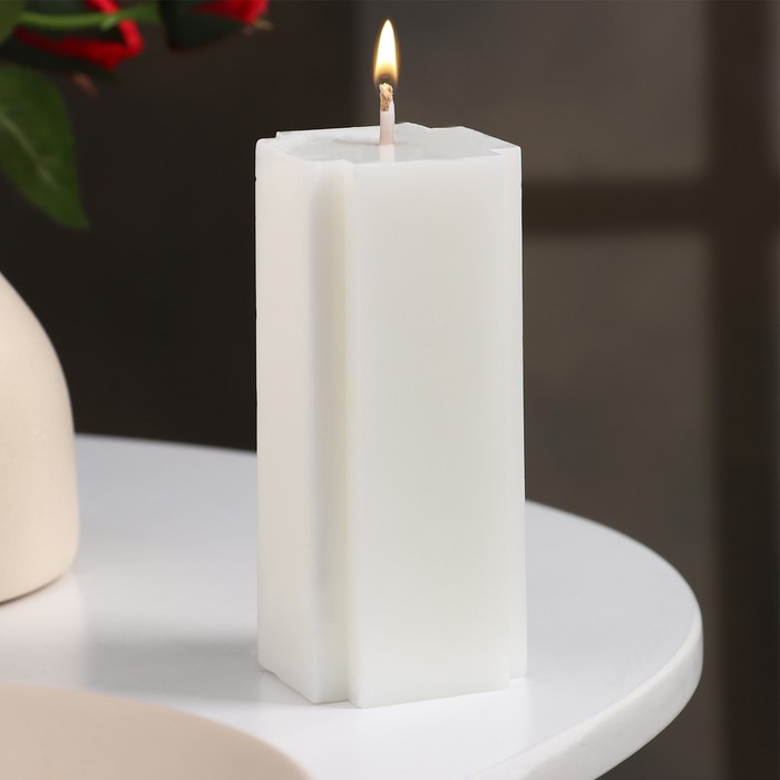 - Универсальный акцент: нейтральный белый цвет и строгая форма делают свечу уместной в любом интерьере.
