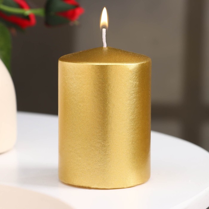 Свеча-цилиндр парафиновая, лакированная, золотой металлик, 5.6?8 см