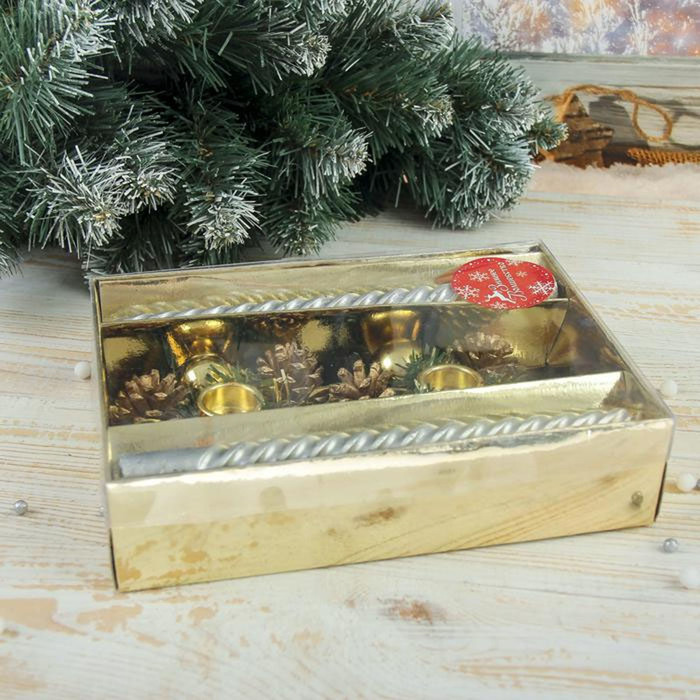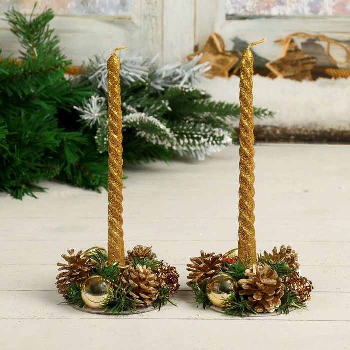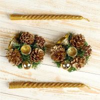 Новогодняя свеча с подсвечником «Мерцание» — это тёплый и торжественный элемент декора для празднования Нового года. В наборе 4 комплекта, каждый из которых включает золотистый подсвечник и восковую свечу. Высота изделия — 21 см, диаметр под свечу — 1,8 см. Украшение выполнено в стиле ар-деко, новогоднее барокко, датский минимализм, классика и фьюжн — идеальный выбор для тех, кто ценит свет, форму и разные подходы к зимнему дизайну.