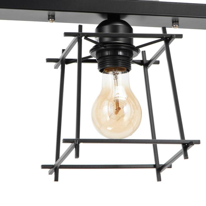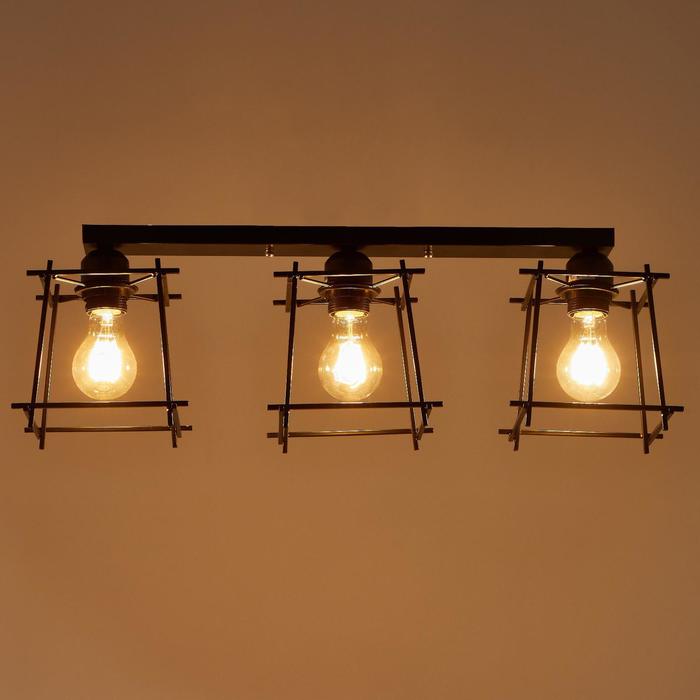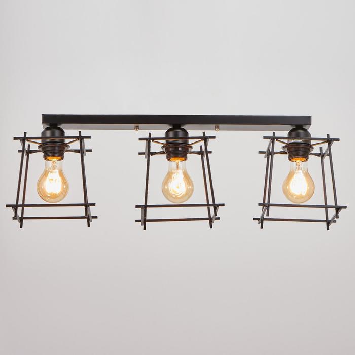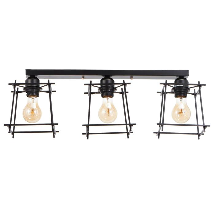 Вид лампы|Накаливания;Количество ламп|3;Стиль|Лофт;Цоколь|E27;Длина, см|67;Ширина, см|17;Высота, см|86;Площадь освещения, м²|6;Минимальная высота от потолка, см|35;Мощность на цоколь, Вт|40;Максимальная высота от потолка, см|86;Степень защиты|IP20;Назначение по помещениям|Коридор;Назначение по помещениям|Балкон;Назначение по помещениям|Прихожая;Материал основания|Металл;Цвет основания|Чёрный;Тип рассеивателя|Плафон;Тип подвеса|Без подвеса (потолочный);Оттенок рассеивателя|Тёмные тона;Форма|Квадратная;Материал рассеивателя|Металл;Управление светильником|Без пульта;Подходит для натяжных потолков|Да (при использования светодиодных ламп);Плоская|Нет;Тип крепления|На планку;Форма рассеивателя|Квадратный;Направление рассеивателя|Вниз;Направление рассеивателя|В стороны;Цвет рассеивателя|Чёрный;Стиль|Лофт;Тип источника освещения|Лампа не в комплекте;