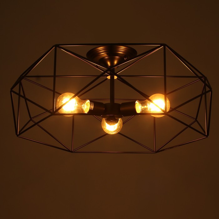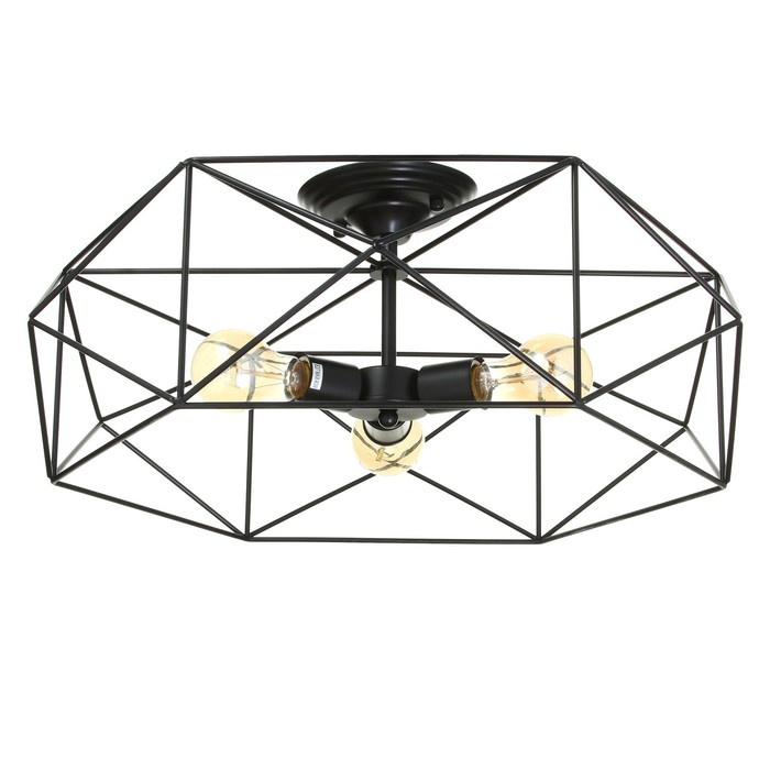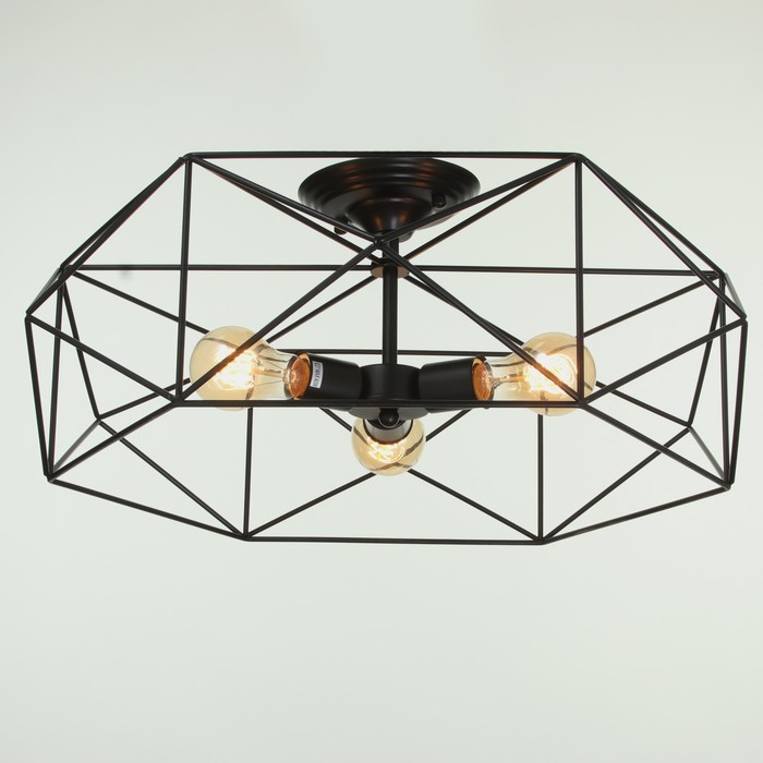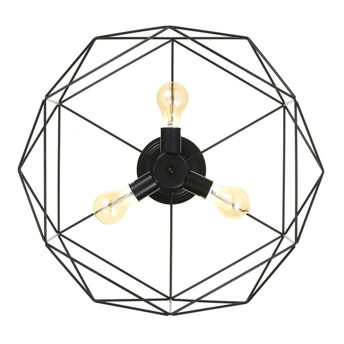 Вид лампы|Накаливания;Количество ламп|3;Стиль|Лофт;Цоколь|E27;Длина, см|58;Ширина, см|58;Высота, см|22;Площадь освещения, м²|6;Минимальная высота от потолка, см|22;Максимальная высота от потолка, см|22;Мощность на цоколь, Вт|40;Степень защиты|IP20;Назначение по помещениям|Гостиная;Назначение по помещениям|Кафе, рестораны;Назначение по помещениям|Офис;Назначение по помещениям|Спальня;Материал основания|Металл;Цвет основания|Чёрный;Тип рассеивателя|Без плафонов;Тип подвеса|Штанга;Оттенок рассеивателя|Тёмные тона;Материал рассеивателя|Металл;Управление светильником|Без пульта;Подходит для натяжных потолков|Да (при использования светодиодных ламп);Плоская|Нет;Тип крепления|На планку;Форма рассеивателя|Шестиугольник;Направление рассеивателя|В стороны;Цвет рассеивателя|Чёрный;Стиль|Лофт;Тип источника освещения|Лампа не в комплекте;