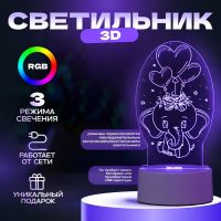 Светильник 3D ночник RISALUX «Слоненок», LED RGB, от сети, 11?9.5?18 см
