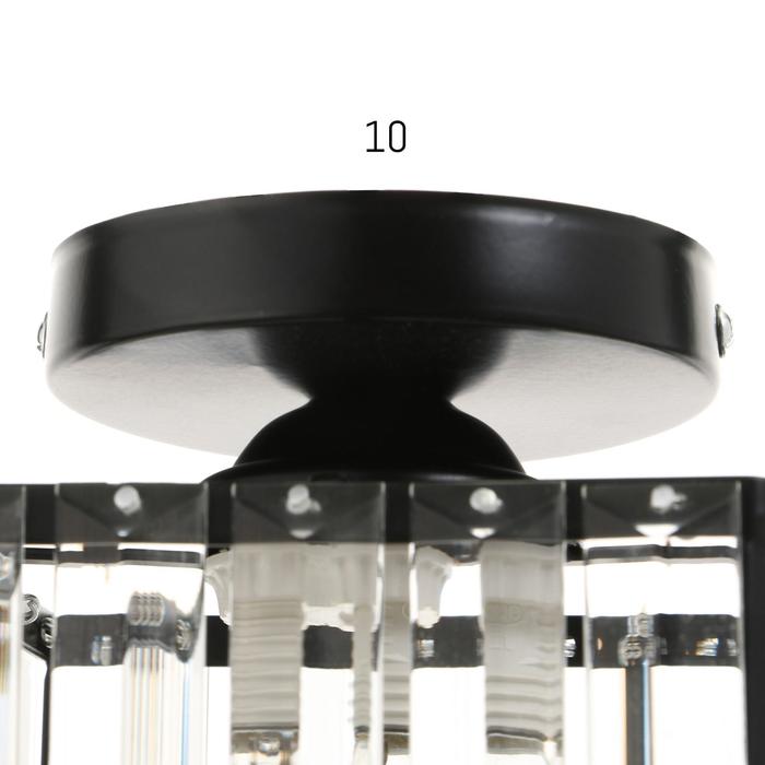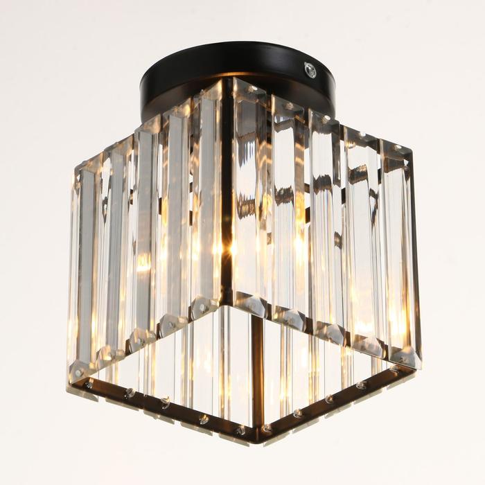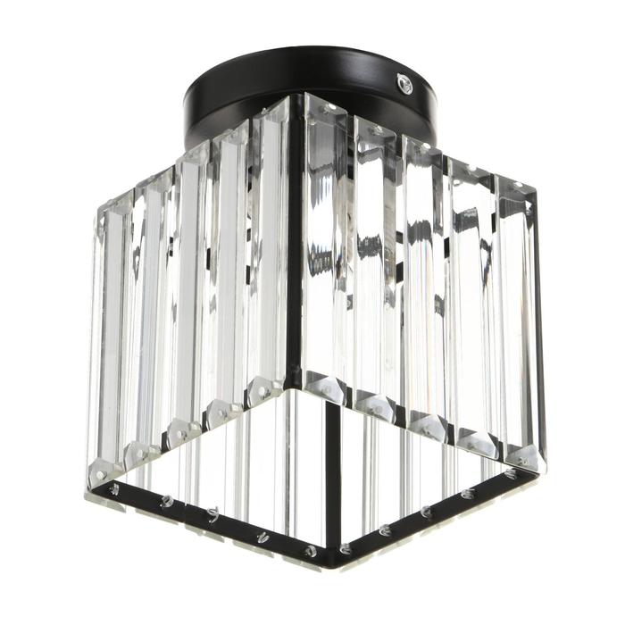 Вид лампы|Накаливания;Количество ламп|1;Стиль|Модерн и хайтек;Цоколь|E27;Длина, см|13;Ширина, см|13;Высота, см|17;Площадь освещения, м²|2;Мощность на цоколь, Вт|40;Степень защиты|IP20;Назначение по помещениям|Гостиная;Назначение по помещениям|Коридор;Назначение по помещениям|Прихожая;Материал основания|Металл;Цвет основания|Чёрный;Тип рассеивателя|Плафон;Тип подвеса|Без подвеса (потолочный);Оттенок рассеивателя|Тёмные тона;Форма|Квадратная;Материал рассеивателя|Металл;Материал рассеивателя|Стекло;Управление светильником|Без пульта;Подходит для натяжных потолков|Да (при использования светодиодных ламп);Плоская|Нет;Тип крепления|На планку;Форма рассеивателя|Квадратный;Направление рассеивателя|Вниз;Цвет рассеивателя|Прозрачный;Стиль|Хрусталь;Стиль|Современный;Стиль|Модерн;Стиль|Лофт;Тип источника освещения|Лампа не в комплекте;