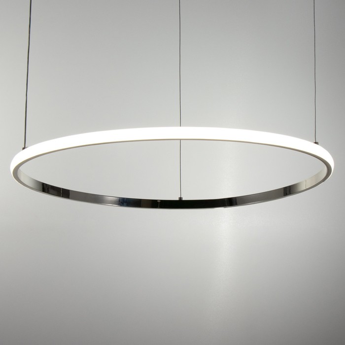 Вид лампы|Светодиодная;Количество ламп|1;Цоколь|Встроенные LED;Длина, см|60;Ширина, см|60;Высота, см|2;Площадь освещения, м²|9;Минимальная высота от потолка, см|20;Мощность на цоколь, Вт|46;Максимальная высота от потолка, см|102;Степень защиты|IP20;Назначение по помещениям|Спальня;Назначение по помещениям|Кафе, рестораны;Назначение по помещениям|Кухня;Назначение по помещениям|Лестничный пролёт;Назначение по помещениям|Гостиная;Материал основания|Металл;Цвет основания|Хром;Тип рассеивателя|Без плафонов;Тип подвеса|Трос;Оттенок рассеивателя|Светлые тона;Форма|Кольцо;Материал рассеивателя|Металл;Материал рассеивателя|Стекло;Управление светильником|Без пульта;Подходит для натяжных потолков|Да (при использования светодиодных ламп);Плоская|Нет;Тип крепления|На планку;Стиль|Хай-тэк;Стиль|Минимализм;Стиль|Дизайнерский;Стиль|Современный;Тип источника освещения|Лампа в комплекте;