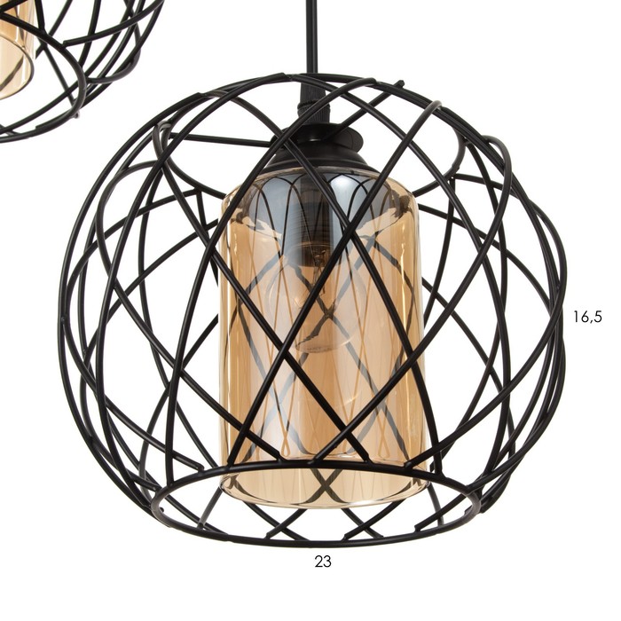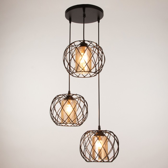 Вид лампы|Накаливания;Количество ламп|3;Цоколь|E27;Ширина, см|22;Площадь освещения, м?|6;Минимальная высота от потолка, см|25;Мощность на цоколь, Вт|40;Максимальная высота от потолка, см|110;Степень защиты|IP20;Назначение по помещениям|Гостиная;Назначение по помещениям|Кухня;Назначение по помещениям|Кафе, рестораны;Назначение по помещениям|Лестничный пролёт;Материал основания|Металл;Цвет основания|Чёрный;Тип рассеивателя|Плафон;Тип подвеса|Провод;Оттенок рассеивателя|Светлые тона;Материал рассеивателя|Металл;Материал рассеивателя|Стекло;Управление светильником|Без пульта;Подходит для натяжных потолков|Да (при использования светодиодных ламп);Тип крепления|На планку;Форма рассеивателя|Полушар;Направление рассеивателя|Вниз;Цвет рассеивателя|Чёрный;Стиль|Модерн;Стиль|Лофт;Тип источника освещения|Лампа не в комплекте;