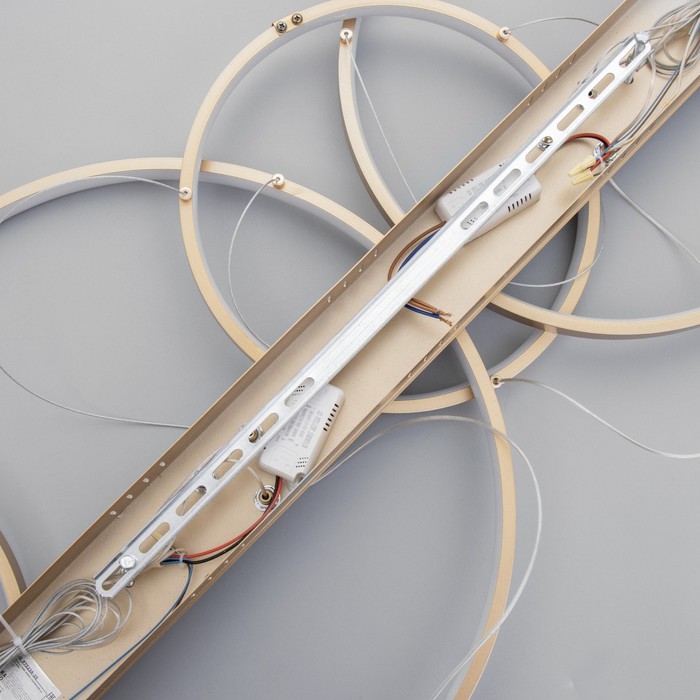 Вид лампы|Светодиодная;Количество ламп|4;Цоколь|Встроенные LED;Длина, см|110;Ширина, см|50;Площадь освещения, м²|19;Минимальная высота от потолка, см|70;Мощность на цоколь, Вт|95;Максимальная высота от потолка, см|100;Степень защиты|IP20;Назначение по помещениям|Прихожая;Назначение по помещениям|Лестничный пролёт;Назначение по помещениям|Спальня;Назначение по помещениям|Кухня;Назначение по помещениям|Гостиная;Назначение по помещениям|Кафе, рестораны;Назначение по помещениям|Магазин;Материал основания|Металл;Цвет основания|Золотой;Тип рассеивателя|Без плафонов;Тип подвеса|Трос;Форма|Конус;Материал рассеивателя|Металл;Материал рассеивателя|Силикон;Управление светильником|Без пульта;Подходит для натяжных потолков|Да (при использования светодиодных ламп);Тип крепления|На планку;Форма рассеивателя|Круглый;Цвет рассеивателя|Золотой;Стиль|Модерн;Стиль|Современный;Стиль|Минимализм;Стиль|Дизайнерский;Тип источника освещения|Лампа в комплекте;