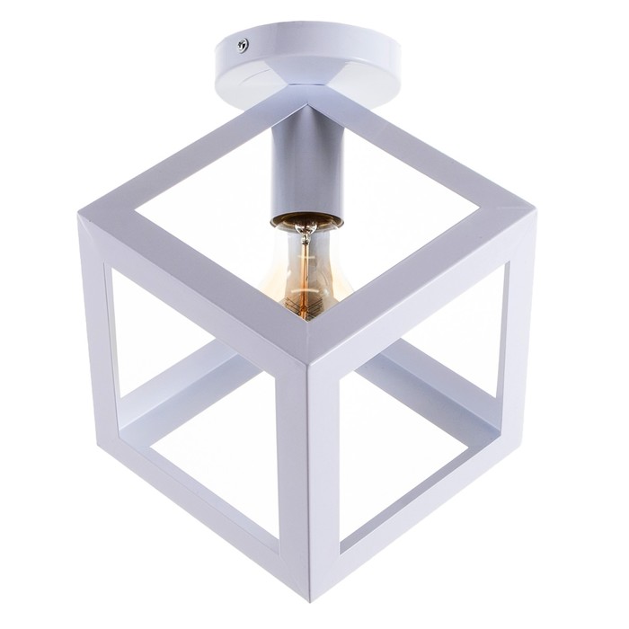 Вид лампы|Накаливания;Количество ламп|1;Стиль|Лофт;Цоколь|E27;Длина, см|23;Ширина, см|23;Высота, см|30;Площадь освещения, м²|2;Максимальная высота от потолка, см|30;Мощность на цоколь, Вт|40;Степень защиты|IP20;Назначение по помещениям|Кухня;Назначение по помещениям|Гостиная;Назначение по помещениям|Кафе, рестораны;Назначение по помещениям|Спальня;Назначение по помещениям|Прихожая;Материал основания|Металл;Цвет основания|Белый;Тип рассеивателя|Без плафонов;Тип подвеса|Без подвеса (потолочный);Оттенок рассеивателя|Светлые тона;Форма|Квадратная;Материал рассеивателя|Металл;Управление светильником|Без пульта;Подходит для натяжных потолков|Да (при использования светодиодных ламп);Плоская|Нет;Тип крепления|На планку;Форма рассеивателя|Квадратный;Направление рассеивателя|Вниз;Цвет рассеивателя|Белый;Стиль|Лофт;Стиль|Минимализм;Тип источника освещения|Лампа не в комплекте;