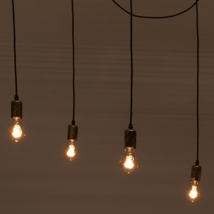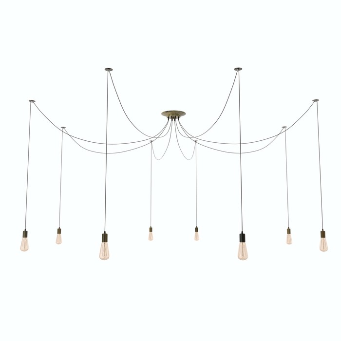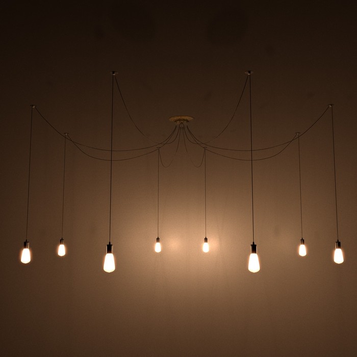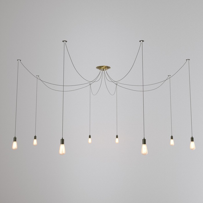 Вид лампы|Накаливания;Количество ламп|8;Стиль|Лофт;Цоколь|E27;Длина, см|80;Ширина, см|80;Высота, см|90;Площадь освещения, м²|16;Мощность на цоколь, Вт|40;Степень защиты|IP20;Назначение по помещениям|Гостиная;Назначение по помещениям|Кухня;Назначение по помещениям|Кафе, рестораны;Назначение по помещениям|Прихожая;Назначение по помещениям|Спальня;Материал основания|Металл;Цвет основания|Чёрный;Тип рассеивателя|Без плафонов;Тип подвеса|Провод;Управление светильником|Без пульта;Подходит для натяжных потолков|Да (при использования светодиодных ламп);Плоская|Нет;Тип крепления|На планку;Стиль|Минимализм;Стиль|Лофт;Стиль|Дизайнерский;Тип источника освещения|Лампа не в комплекте;