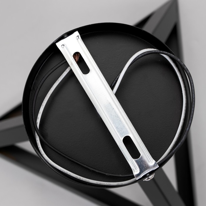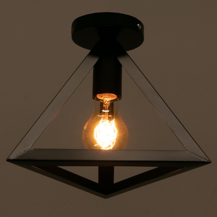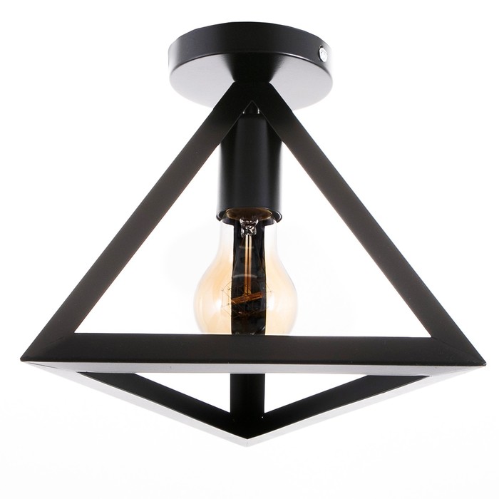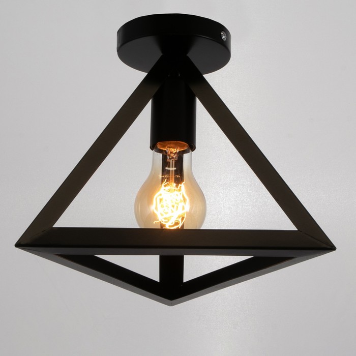 Вид лампы|Накаливания;Количество ламп|1;Стиль|Лофт;Цоколь|E27;Длина, см|23;Ширина, см|23;Высота, см|20;Площадь освещения, м²|2;Минимальная высота от потолка, см|20;Максимальная высота от потолка, см|20;Мощность на цоколь, Вт|40;Степень защиты|IP20;Назначение по помещениям|Коридор;Назначение по помещениям|Прихожая;Назначение по помещениям|Кафе, рестораны;Материал основания|Металл;Цвет основания|Чёрный;Тип рассеивателя|Без плафонов;Тип подвеса|Без подвеса (потолочный);Оттенок рассеивателя|Тёмные тона;Форма|Треугольная;Материал рассеивателя|Металл;Управление светильником|Без пульта;Подходит для натяжных потолков|Да (при использования светодиодных ламп);Тип крепления|На планку;Форма рассеивателя|Треугольный;Цвет рассеивателя|Чёрный;Стиль|Лофт;Стиль|Замковый;Тип источника освещения|Лампа не в комплекте;