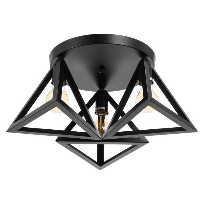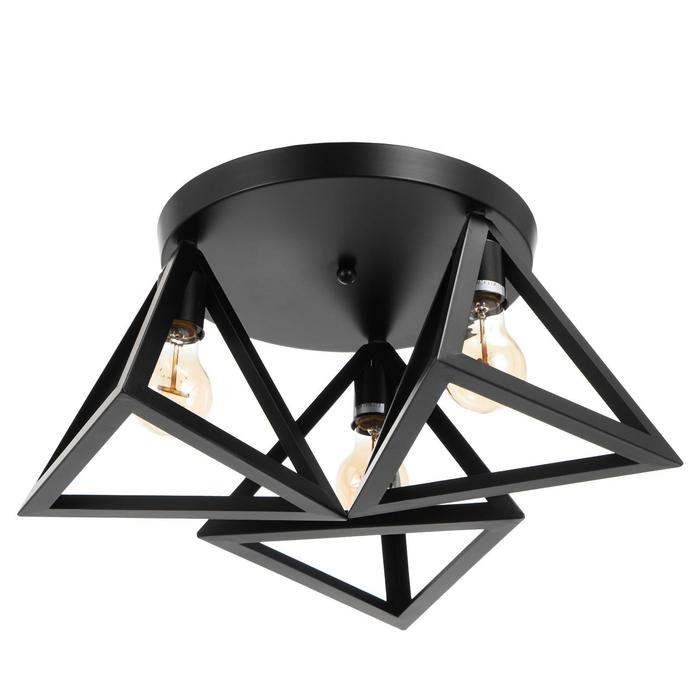 Вид лампы|Накаливания;Количество ламп|3;Стиль|Лофт;Цоколь|E27;Длина, см|51;Ширина, см|51;Высота, см|20;Площадь освещения, м²|6;Максимальная высота от потолка, см|20;Мощность на цоколь, Вт|40;Минимальная высота от потолка, см|51;Степень защиты|IP20;Назначение по помещениям|Гостиная;Назначение по помещениям|Кухня;Назначение по помещениям|Коридор;Назначение по помещениям|Кафе, рестораны;Назначение по помещениям|Офис;Материал основания|Металл;Цвет основания|Чёрный;Тип рассеивателя|Плафон;Тип подвеса|Без подвеса (потолочный);Оттенок рассеивателя|Тёмные тона;Форма|Треугольная;Материал рассеивателя|Металл;Управление светильником|Без пульта;Подходит для натяжных потолков|Да (при использования светодиодных ламп);Плоская|Нет;Тип крепления|На планку;Форма рассеивателя|Треугольный;Направление рассеивателя|Вниз;Направление рассеивателя|В стороны;Цвет рассеивателя|Чёрный;Стиль|Лофт;Стиль|Модерн;Тип источника освещения|Лампа не в комплекте;