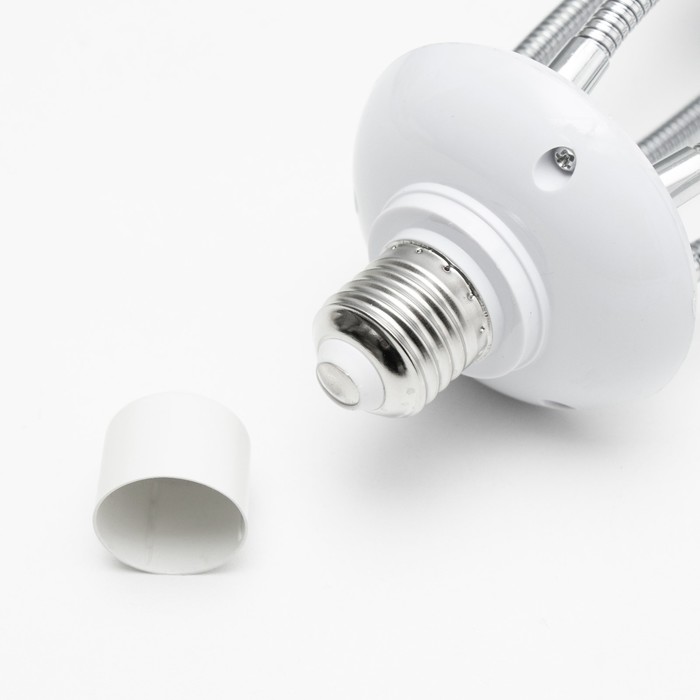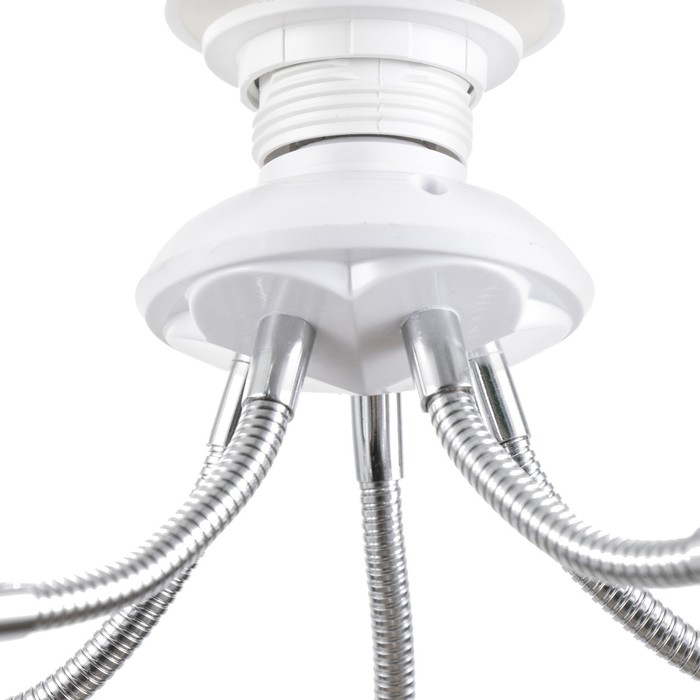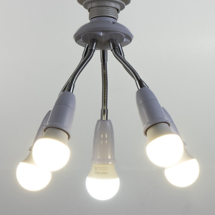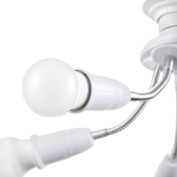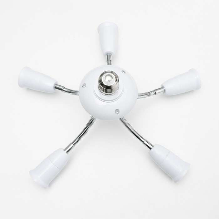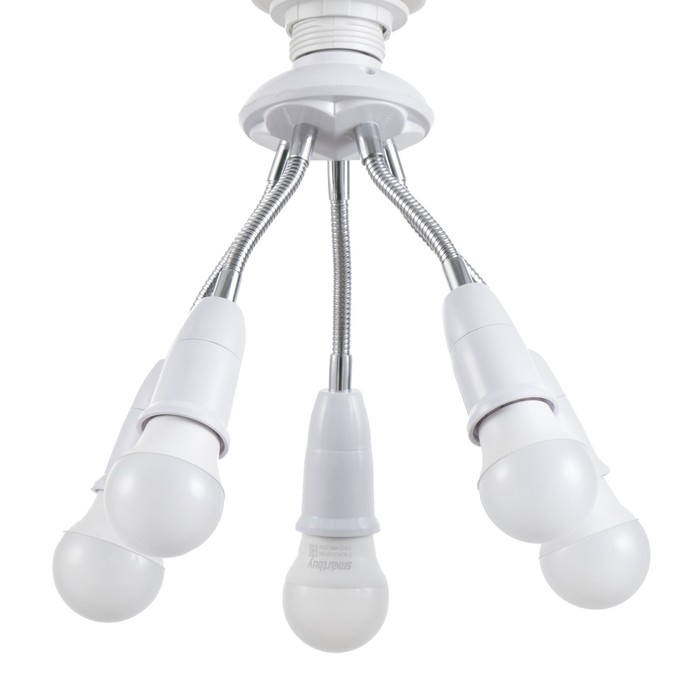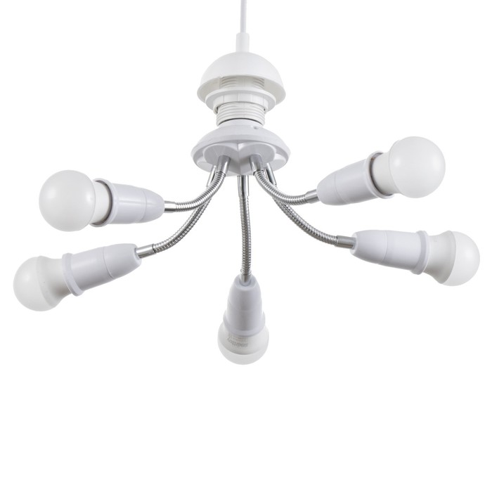 Вид лампы|Светодиодная;Количество ламп|5;Стиль|Эконом;Цоколь|E27;Длина, см|8;Ширина, см|8;Высота, см|22;Площадь освещения, м²|10;Мощность на цоколь, Вт|15;Минимальная высота от потолка, см|22;Максимальная высота от потолка, см|27;Степень защиты|IP20;Назначение по помещениям|Кухня;Назначение по помещениям|Спальня;Назначение по помещениям|Гостиная;Материал основания|Металл;Цвет основания|Белый;Тип рассеивателя|Без плафонов;Тип подвеса|Без подвеса (потолочный);Оттенок рассеивателя|Светлые тона;Материал рассеивателя|Пластик;Управление светильником|Без пульта;Подходит для натяжных потолков|Да (при использования светодиодных ламп);Плоская|Нет;Тип крепления|За основание;Направление рассеивателя|В стороны;Цвет рассеивателя|Белый;Стиль|Минимализм;Тип источника освещения|Лампа не в комплекте;