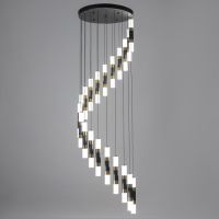 Вид лампы|Светодиодная;Количество ламп|20;Цоколь|Встроенные LED;Длина, см|70;Ширина, см|70;Высота, см|250;Площадь освещения, м²|20;Мощность на цоколь, Вт|120;Минимальная высота от потолка, см|150;Максимальная высота от потолка, см|250;Степень защиты|IP20;Назначение по помещениям|Большой зал;Назначение по помещениям|Лестничный пролёт;Материал основания|Металл;Цвет основания|Чёрный;Тип рассеивателя|Плафон;Тип подвеса|Провод;Форма|Каскад;Материал рассеивателя|Стекло;Управление светильником|Без пульта;Подходит для натяжных потолков|Да (при использования светодиодных ламп);Тип крепления|На планку;Форма рассеивателя|Цилиндр;Форма рассеивателя|Нестандартная;Цвет рассеивателя|Чёрный;Цвет рассеивателя|Прозрачный;Стиль|Дизайнерский;Стиль|Модерн;Тип источника освещения|Встроенная LED;