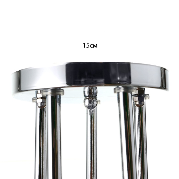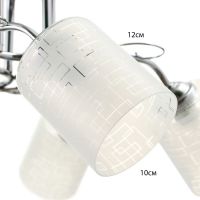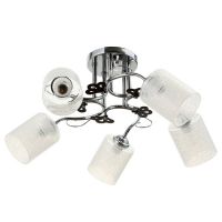 Вид лампы|Накаливания;Количество ламп|5;Стиль|Эконом;Цоколь|E27;Длина, см|67;Ширина, см|67;Высота, см|26;Площадь освещения, м²|5;Мощность на цоколь, Вт|40;Степень защиты|IP20;Назначение по помещениям|Гостиная;Назначение по помещениям|Спальня;Назначение по помещениям|Кухня;Материал основания|Металл;Цвет основания|Хром;Тип рассеивателя|Плафон;Тип подвеса|Штанга;Оттенок рассеивателя|Светлые тона;Материал рассеивателя|Стекло;Управление светильником|Без пульта;Подходит для натяжных потолков|Да (при использования светодиодных ламп);Плоская|Нет;Тип крепления|На планку;Форма рассеивателя|Цилиндр;Направление рассеивателя|Вниз;Цвет рассеивателя|Белый;Стиль|Минимализм;Тип источника освещения|Лампа не в комплекте;