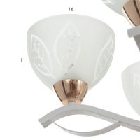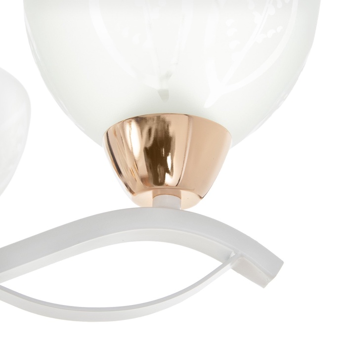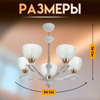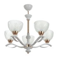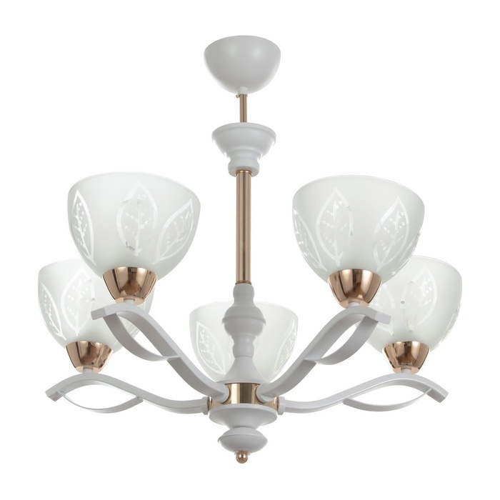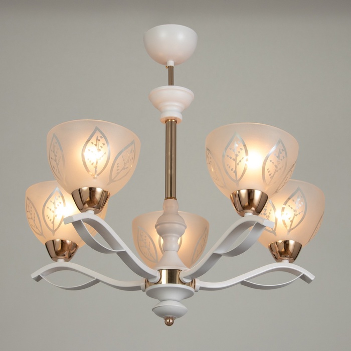 Вид лампы|Накаливания;Количество ламп|5;Стиль|Классика;Цоколь|E27;Длина, см|54;Ширина, см|54;Высота, см|56;Площадь освещения, м²|10;Мощность на цоколь, Вт|40;Минимальная высота от потолка, см|56;Максимальная высота от потолка, см|110;Степень защиты|IP20;Назначение по помещениям|Кухня;Назначение по помещениям|Гостиная;Назначение по помещениям|Спальня;Назначение по помещениям|Прихожая;Материал основания|Металл;Цвет основания|Белый;Тип рассеивателя|Плафон;Тип подвеса|Провод;Оттенок рассеивателя|Светлые тона;Материал рассеивателя|Стекло;Управление светильником|Без выключателя;Подходит для натяжных потолков|Да (при использования светодиодных ламп);Плоская|Нет;Тип крепления|На планку;Форма рассеивателя|Конусный;Направление рассеивателя|Вверх;Цвет рассеивателя|Белый;Стиль|Классика;Тип источника освещения|Лампа не в комплекте;