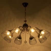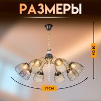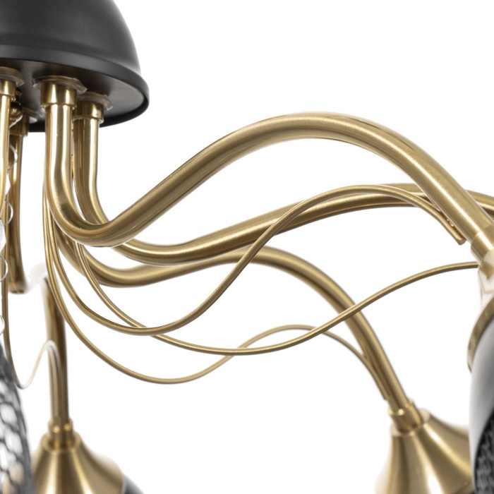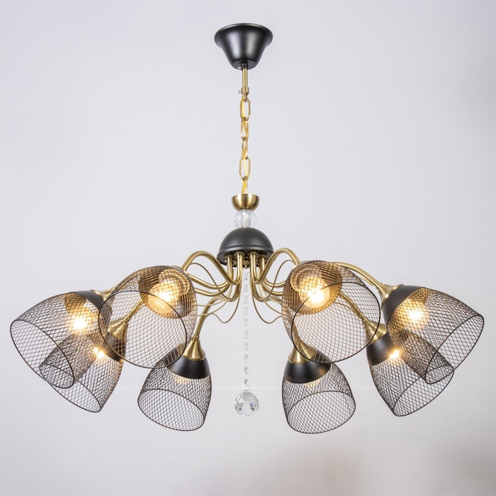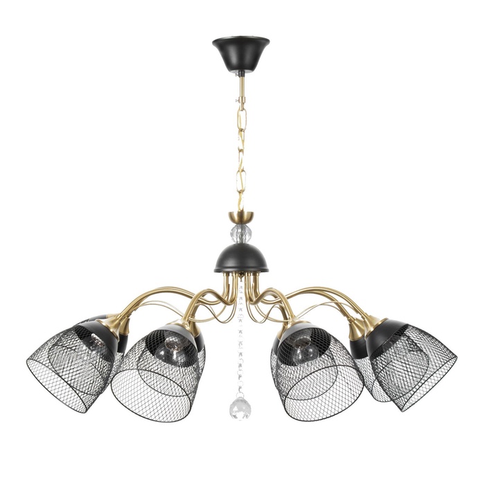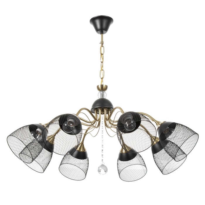 Вид лампы|Накаливания;Количество ламп|8;Стиль|Модерн и хайтек;Цоколь|E27;Длина, см|71;Ширина, см|71;Высота, см|65;Площадь освещения, м²|24;Минимальная высота от потолка, см|38;Мощность на цоколь, Вт|40;Максимальная высота от потолка, см|65;Степень защиты|IP20;Назначение по помещениям|Большой зал;Назначение по помещениям|Спальня;Назначение по помещениям|Гостиная;Материал основания|Металл;Цвет основания|Чёрный;Цвет основания|Золотой;Тип рассеивателя|Плафон;Тип подвеса|Цепь;Материал рассеивателя|Металл;Управление светильником|Без пульта;Подходит для натяжных потолков|Да (при использования светодиодных ламп);Тип крепления|Под крюк;Форма рассеивателя|Конусный;Цвет рассеивателя|Чёрный;Стиль|Лофт;Тип источника освещения|Лампа не в комплекте;