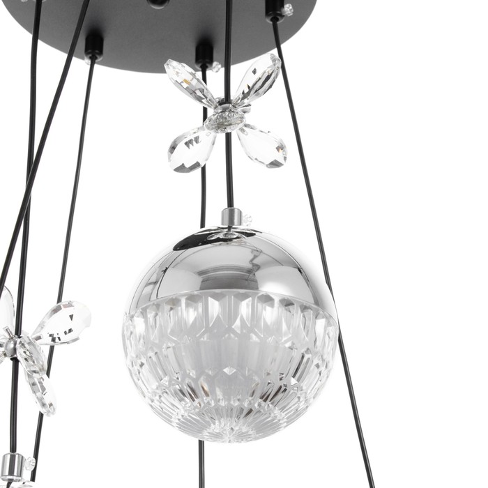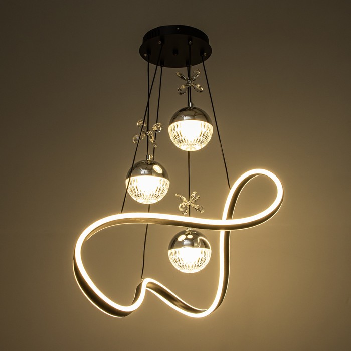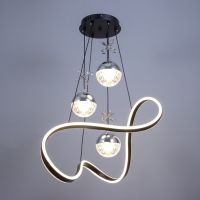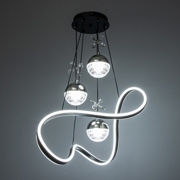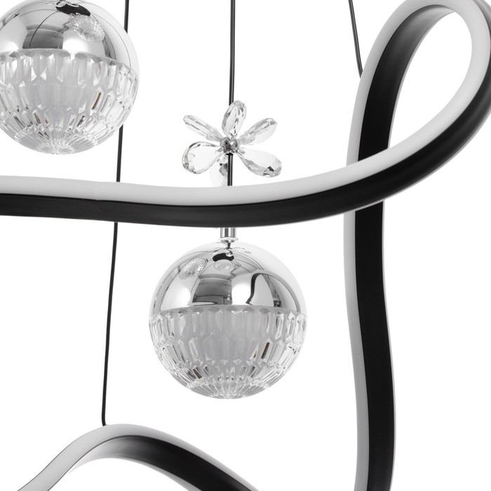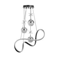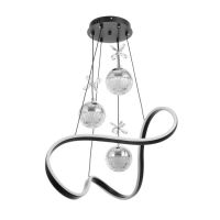 Вид лампы|Светодиодная;Количество ламп|4;Цоколь|Встроенные LED;Длина, см|49;Ширина, см|49;Высота, см|15;Высота, см|115;Минимальная высота от потолка, см|20;Площадь освещения, м²|28;Максимальная высота от потолка, см|115;Мощность на цоколь, Вт|140;Степень защиты|IP20;Назначение по помещениям|Кафе, рестораны;Назначение по помещениям|Большой зал;Назначение по помещениям|Гостиная;Материал основания|Металл;Цвет основания|Чёрный;Тип рассеивателя|Без плафонов;Тип подвеса|Трос;Форма|Волны;Форма|Шар;Материал рассеивателя|Акрил;Материал рассеивателя|Металл;Управление светильником|Есть пульт ДУ;Подходит для натяжных потолков|Да (при использования светодиодных ламп);Тип крепления|На планку;Форма рассеивателя|Нестандартная;Цвет рассеивателя|Чёрный;Стиль|Хай-тэк;Стиль|Современный;Стиль|Дизайнерский;Тип источника освещения|Встроенная LED;