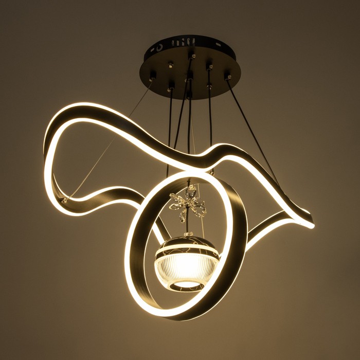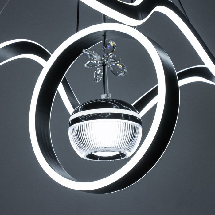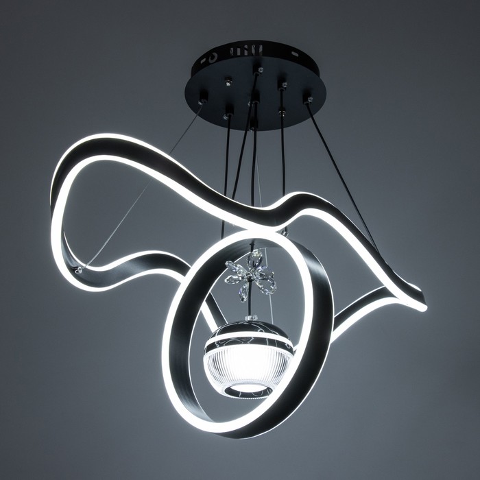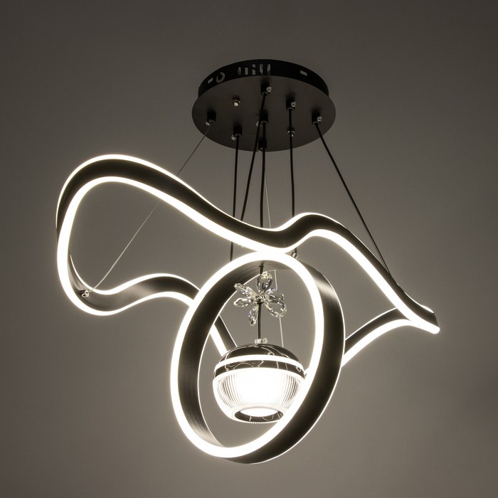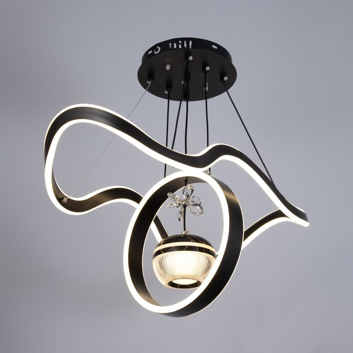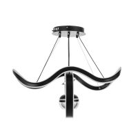 Вид лампы|Светодиодная;Количество ламп|3;Цоколь|Встроенные LED;Длина, см|63;Ширина, см|29;Высота, см|15;Высота, см|115;Минимальная высота от потолка, см|20;Площадь освещения, м²|35;Максимальная высота от потолка, см|115;Мощность на цоколь, Вт|180;Степень защиты|IP20;Назначение по помещениям|Кафе, рестораны;Назначение по помещениям|Гостиная;Назначение по помещениям|Большой зал;Материал основания|Металл;Цвет основания|Чёрный;Тип рассеивателя|Без плафонов;Тип подвеса|Трос;Форма|Волны;Форма|Круглая;Материал рассеивателя|Металл;Материал рассеивателя|Акрил;Управление светильником|Есть пульт ДУ;Подходит для натяжных потолков|Да (при использования светодиодных ламп);Тип крепления|На планку;Форма рассеивателя|Нестандартная;Цвет рассеивателя|Чёрный;Стиль|Хай-тэк;Стиль|Современный;Стиль|Дизайнерский;Тип источника освещения|Встроенная LED;