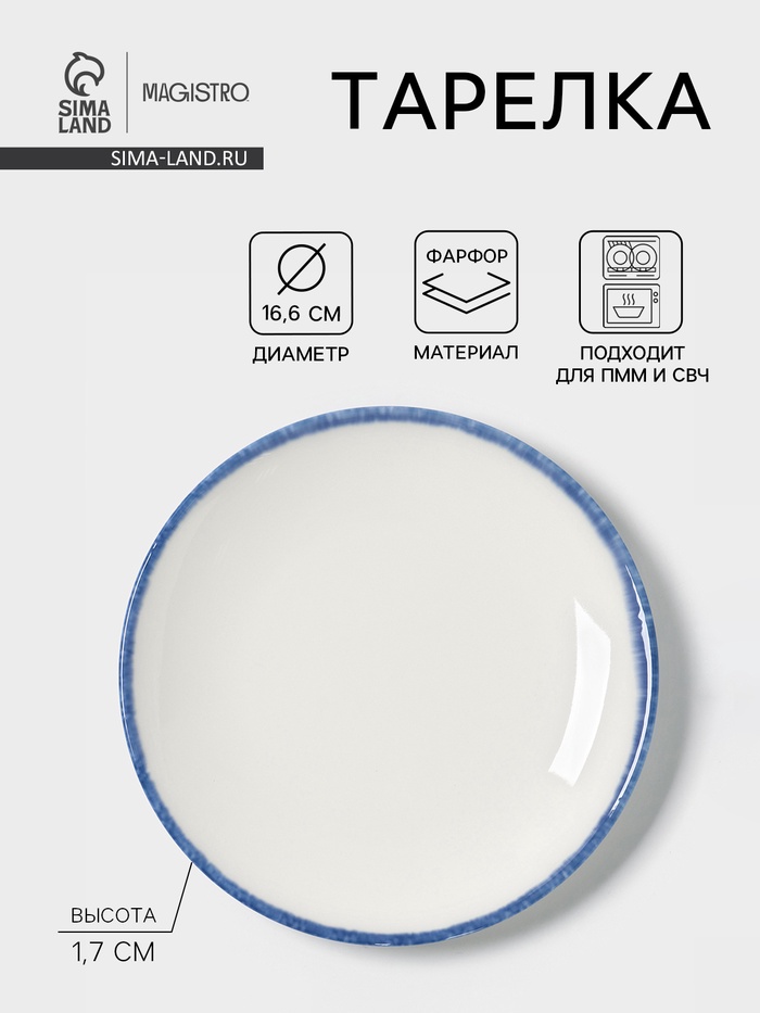 Тарелка Magistro Blue Lagoon, d=16.6 см, фарфор, белая
