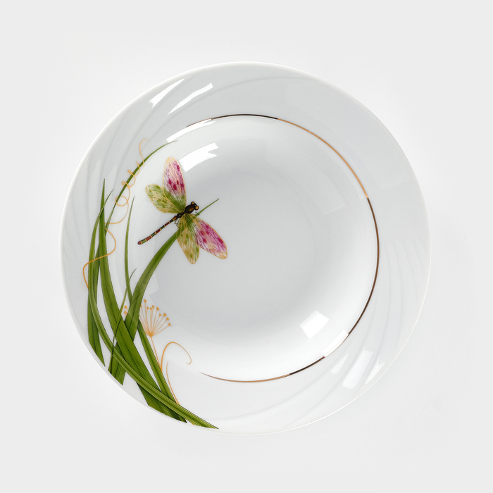 Тарелка фарфоровая глубокая «Стрекоза», 250 мл, d=20 см, белая