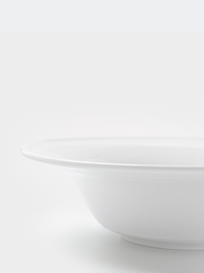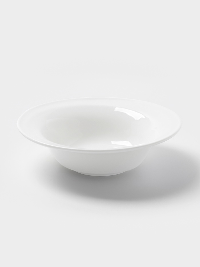 Изготовленная из высококачественного фарфора, эта тарелка обладает гладкой текстурой и белоснежным цветом, что делает её универсальной для любого стиля сервировки.