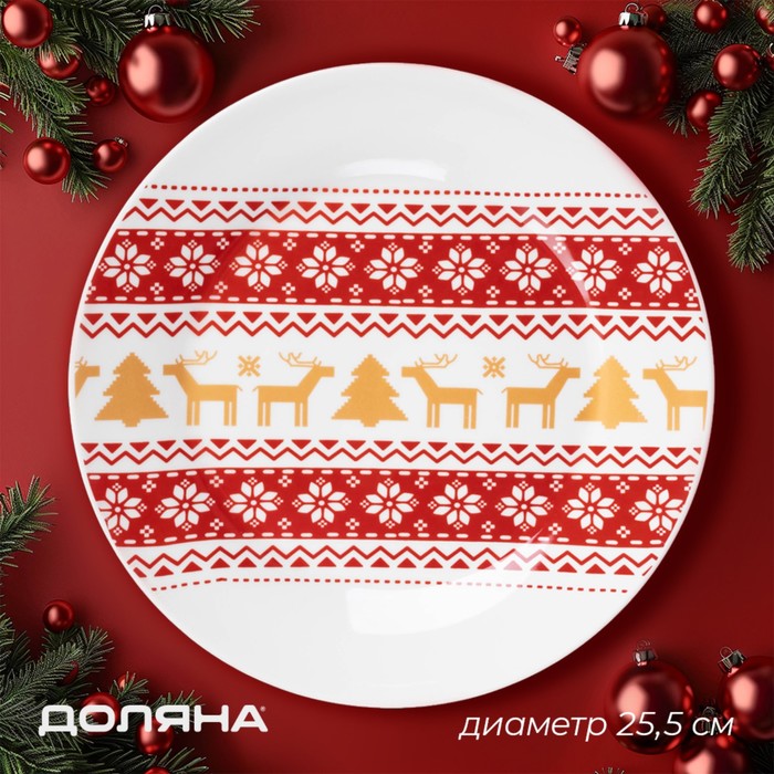 Тарелка новогодняя Доляна «Финский лес», d=25,5 см, фарфор, цвет белый