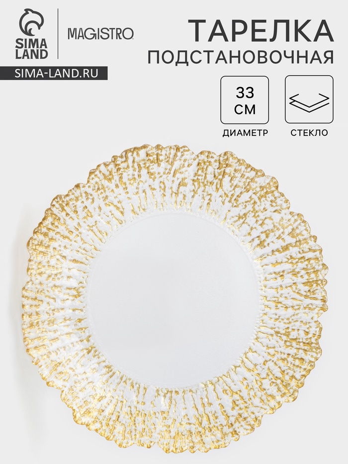 Тарелка стеклянная подстановочная «Сияние», d=33 см, окантовка золото